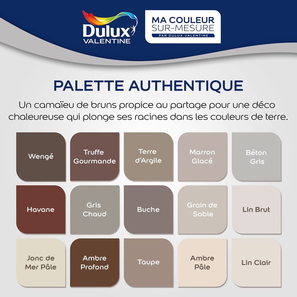 Ma réponse va peut-être vous surprendre. Pour moi, dans une petite chambre, il est intéressant de faire un total look taupe, du sol au plafond. C’est contre-intuitif mais avec une nuance de taupe assez claire, comme les teintes grains de sable, marron glacé ou même lin brut que vous pouvez voir sur le nuancier ci-dessous, a le pouvoir de rendre la pièce plus chaleureuse.