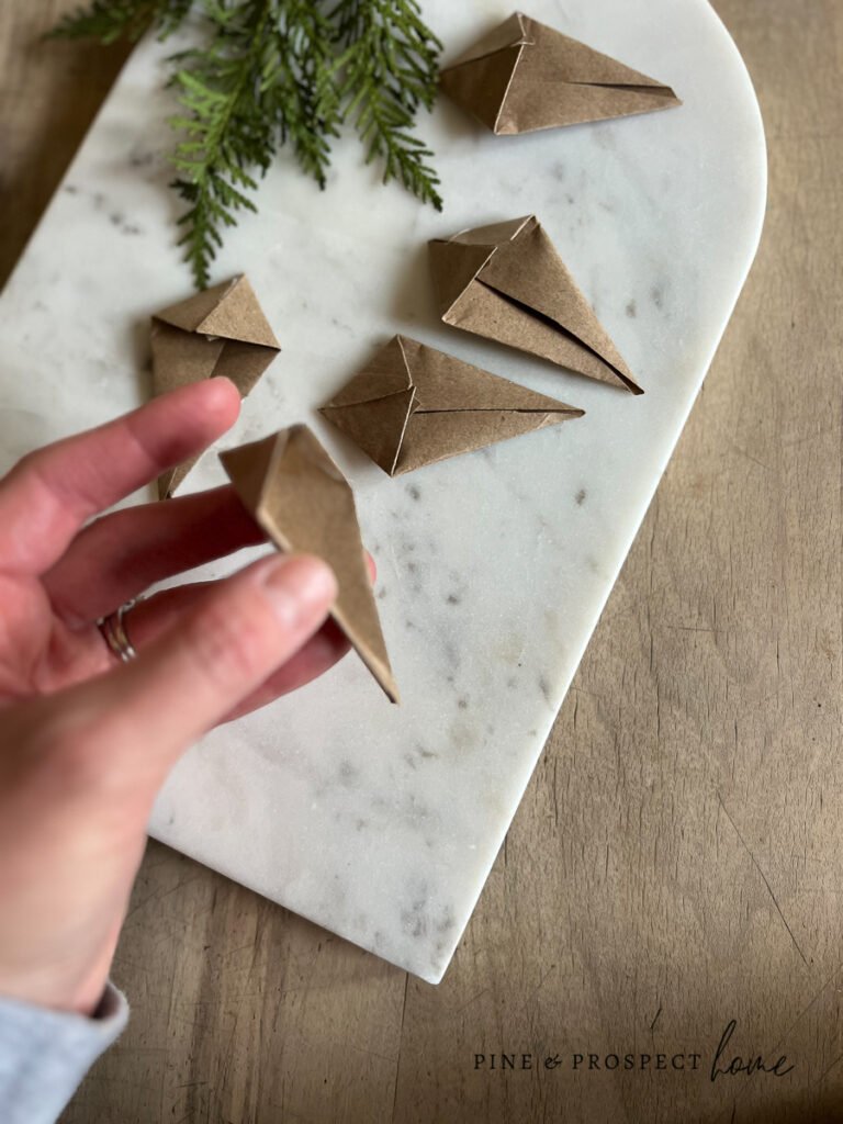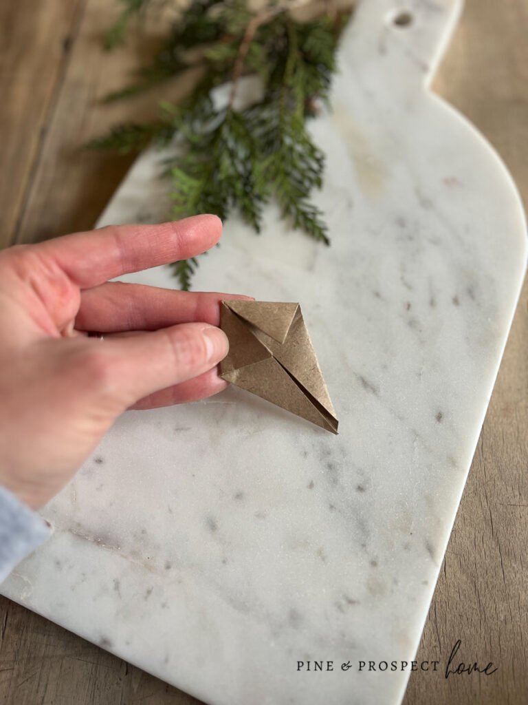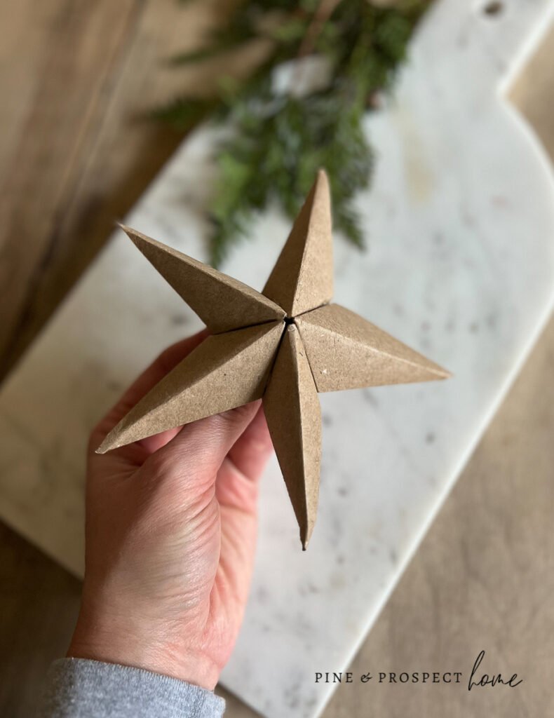 Pour la dernière étape, dépliez légèrement chaque élément, puis collez-les ensemble en suivant les arêtes intérieures afin de former une étoile parfaite.