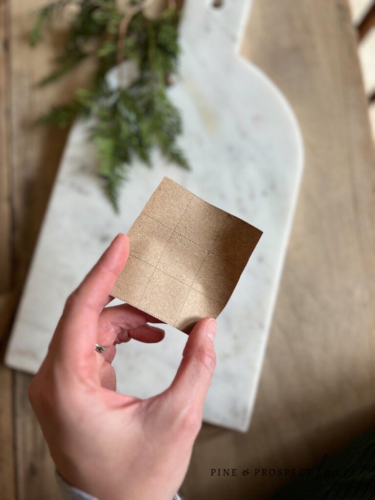 La taille de votre carré déterminera celle de votre étoile. Par exemple, un carré d’environ 7,5 cm donne une étoile terminée d’environ 15 cm.